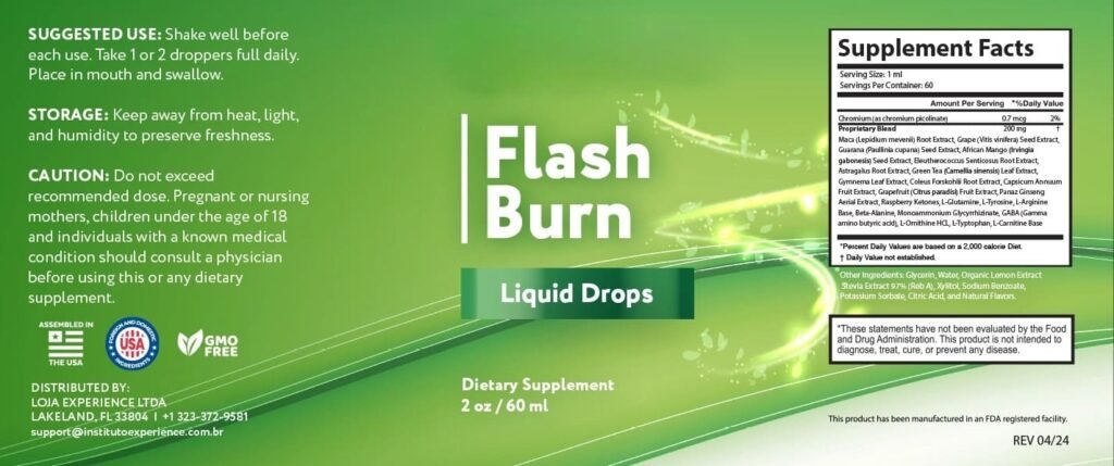 ⚠️ Note: Flash Burn contains only natural, plant-based ingredients and does not include banned substances or harmful additives. The formula is manufactured in facilities that follow GMP standards and comply with FDA guidelines for dietary supplements.